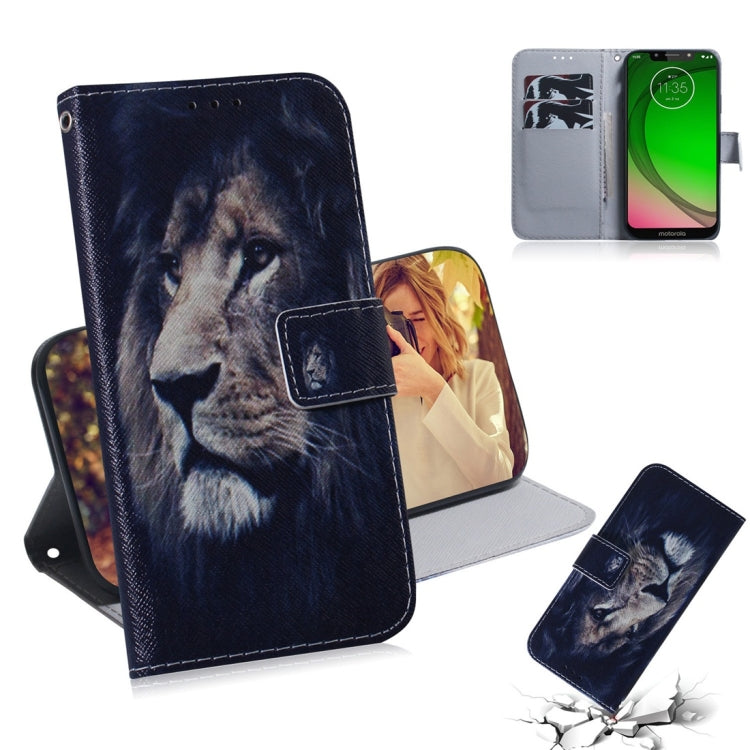 Lion Pattern Coloured Drawing Horizontal Flip Leather Case for Motorola Moto G7 Play, with Holder & Card Slots & Wallet
