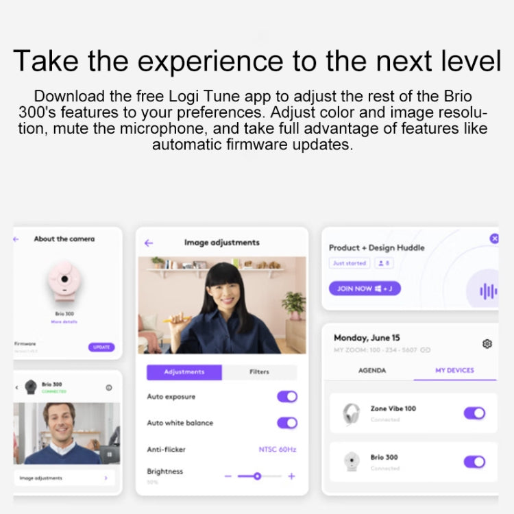 Logitech Brio 300 2MP 1080P Full HD IP Camera with Noise Reduction Microphone (White)