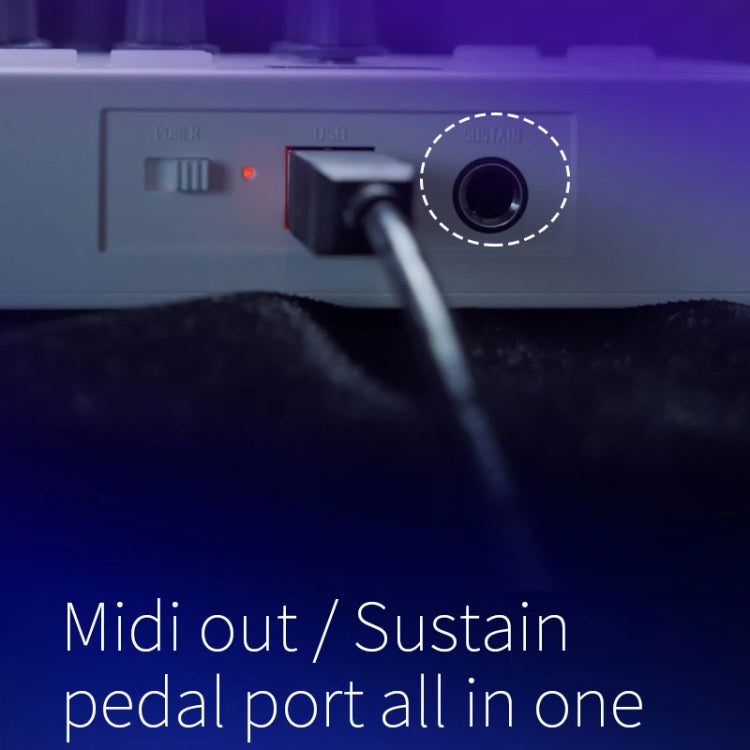 6. Combined sustain pedal port and MIDI OUT port in one unit