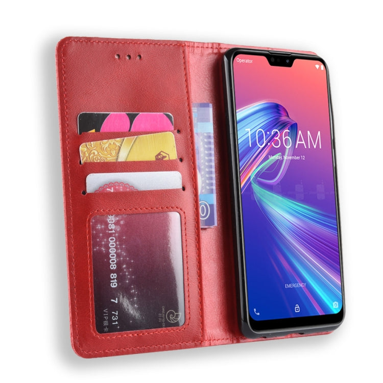 Magnetic Buckle Retro Texture Horizontal Flip Leather Case for Asus Zenfone Max Plus (M2) ZB634KL / Zenfone Max Shot ZB634KL, with Holder & Card Slots & Wallet (Red)