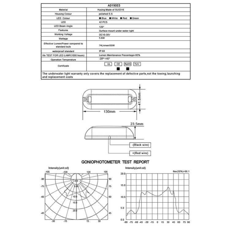 2. Made of stainless steel, resistant to vibration and shock, recommended for use above the waterline, easy to install Surface mount, with small holes for wiring.