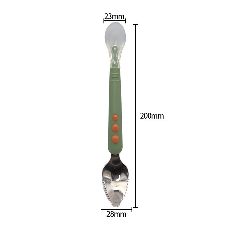 2. Rounded elastic spoon head, fits the curvature of the babys mouth, massages the gums, and protects the mouth