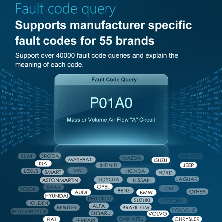 11. Support supplier-specific fault codes of 55 brands, support more than 40,000 fault code queries, and explain the meaning of each code