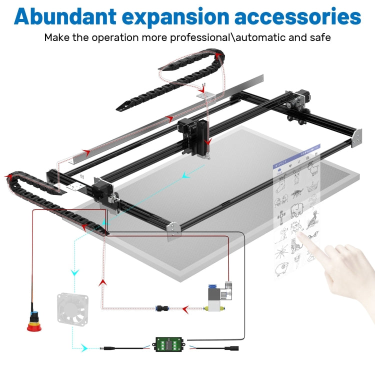 1. The standard area is 810*460, and the extended Y-axis track kit provided by NEJE can be extended to a larger area to meet the needs of large-area engraving and cutting.