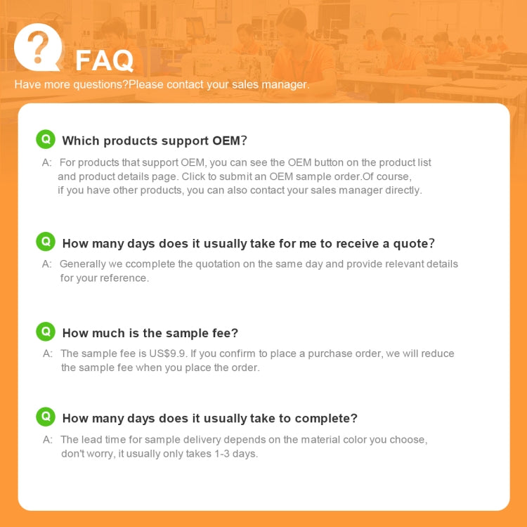A: For products that support OEM, you can see the OEM button on the product list and product details page. Click to submit an OEM sample order.