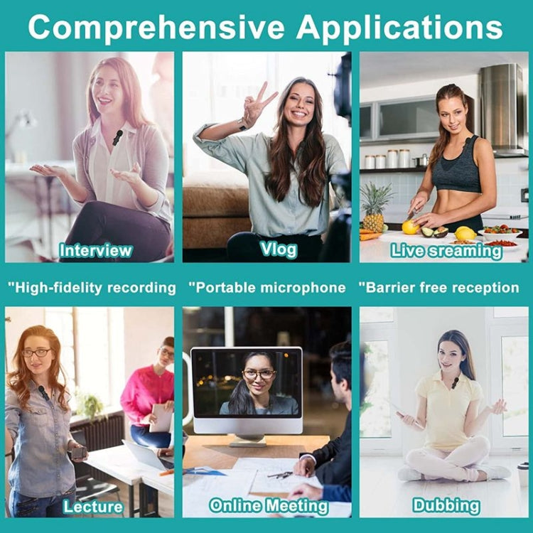2. Designed with 3.5mm interface receiver, suitable for PC, laptop, camera, trolley speaker, tape recorder, etc., widely compatible with most social media applications on the market.