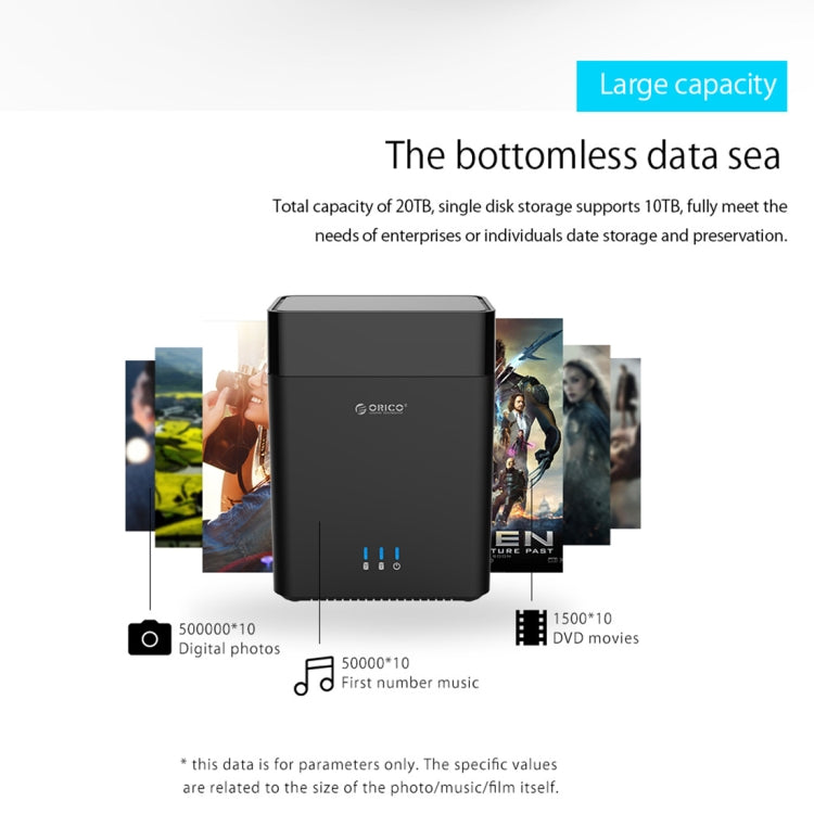 2. Total capacity of 20TB, single disk storage supports 10TB, fully meet the needs of enterprises or individuals date storage and preservation.