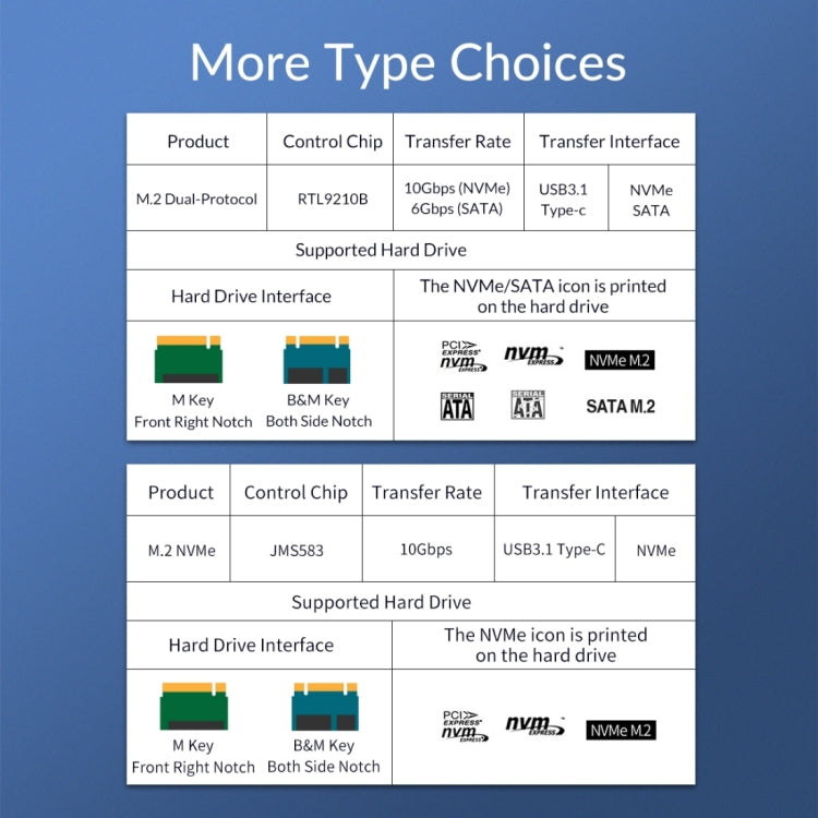 Compatible with m.2 nvme and m.2 SATA protocol