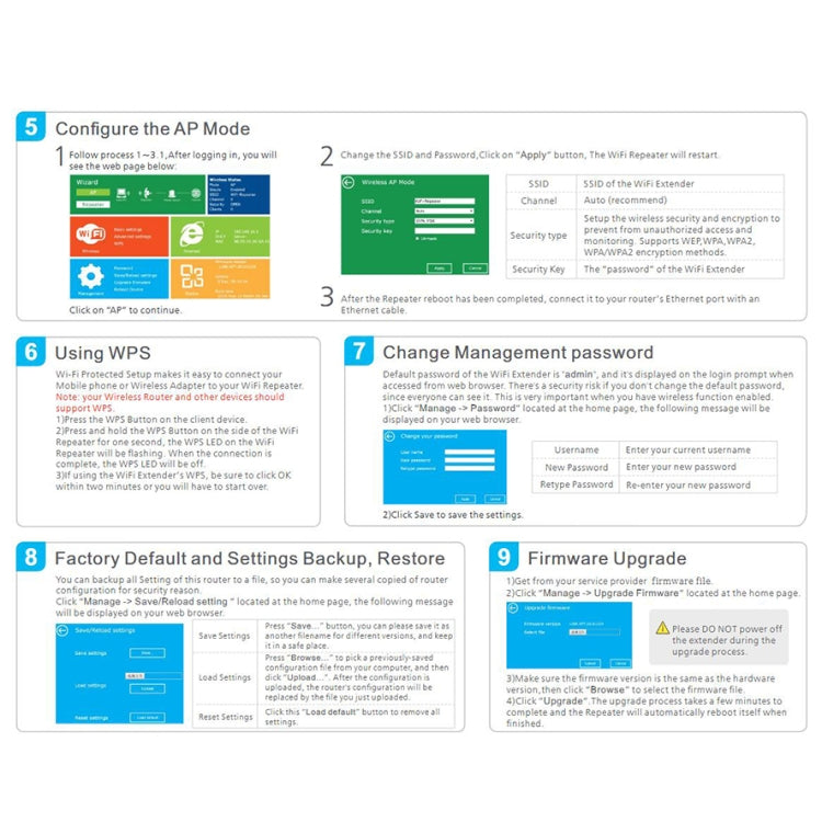 -Wireless mode: Repeater/AP