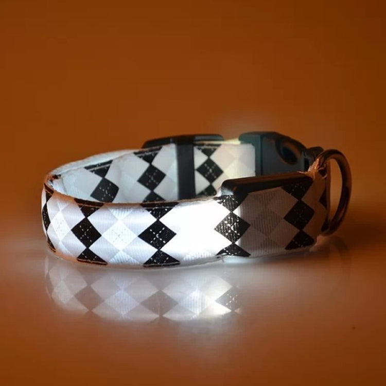 Plaid Pattern Rechargeable LED Glow Light Leads Pet Dog Collar for Small Medium Dogs, Size:L(White)