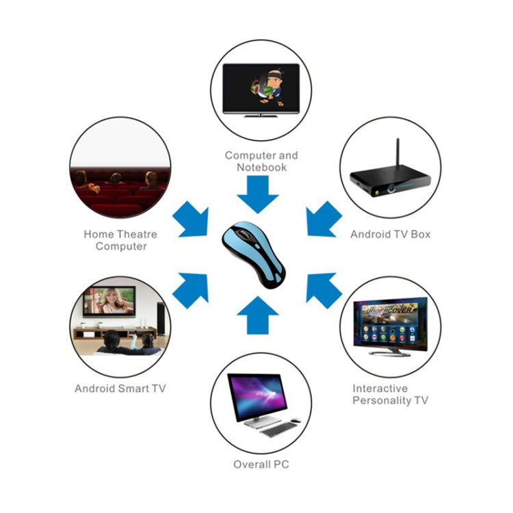 1. 2 in 1 Mouse: 2.4GHz optical mouse + 6D gyroscope fly air mouse.