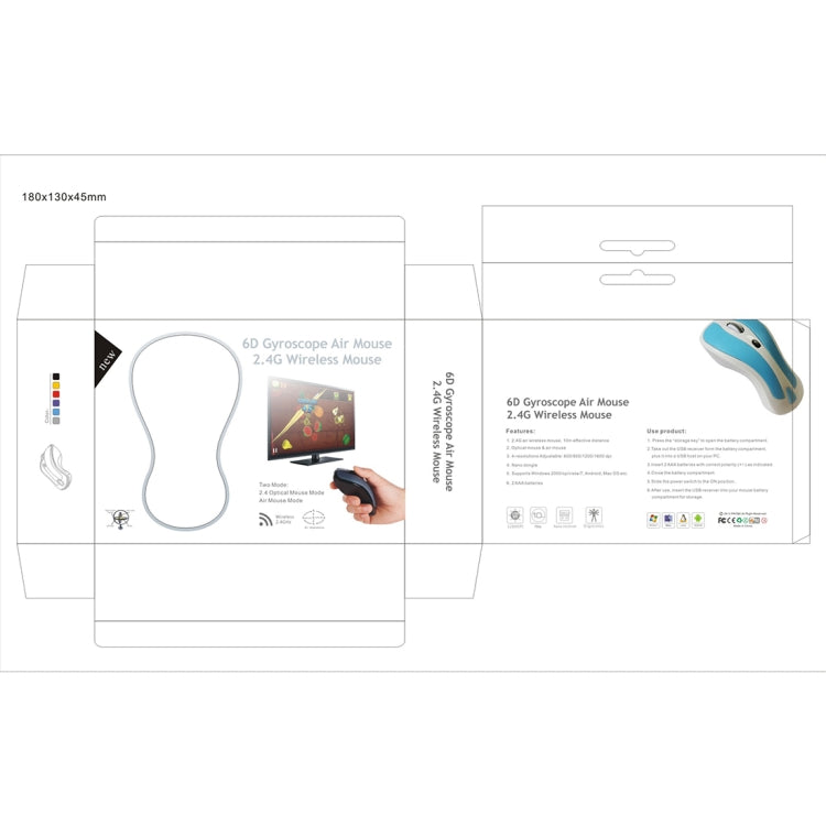 1. 2 in 1 Mouse: 2.4GHz optical mouse + 6D gyroscope fly air mouse.