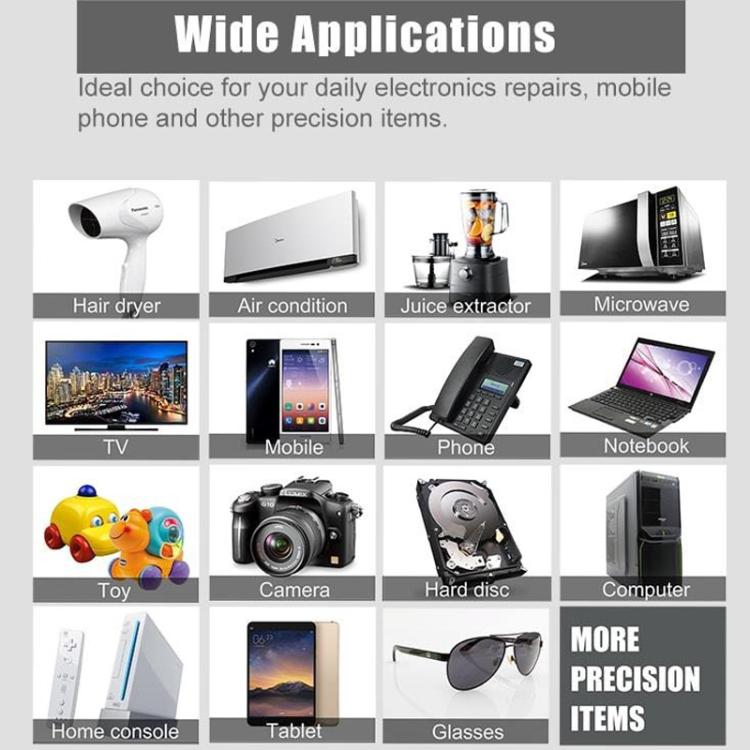 1. Ideal for daily electronic product repairs, mobile phones, and other delicate items.