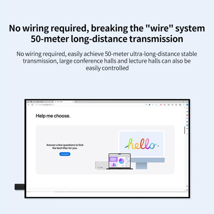 6. No wiring is required, easily achieve 50 meters ultra-long-distance stable transmission, large conference halls and lecture halls can also be easily controlled.
