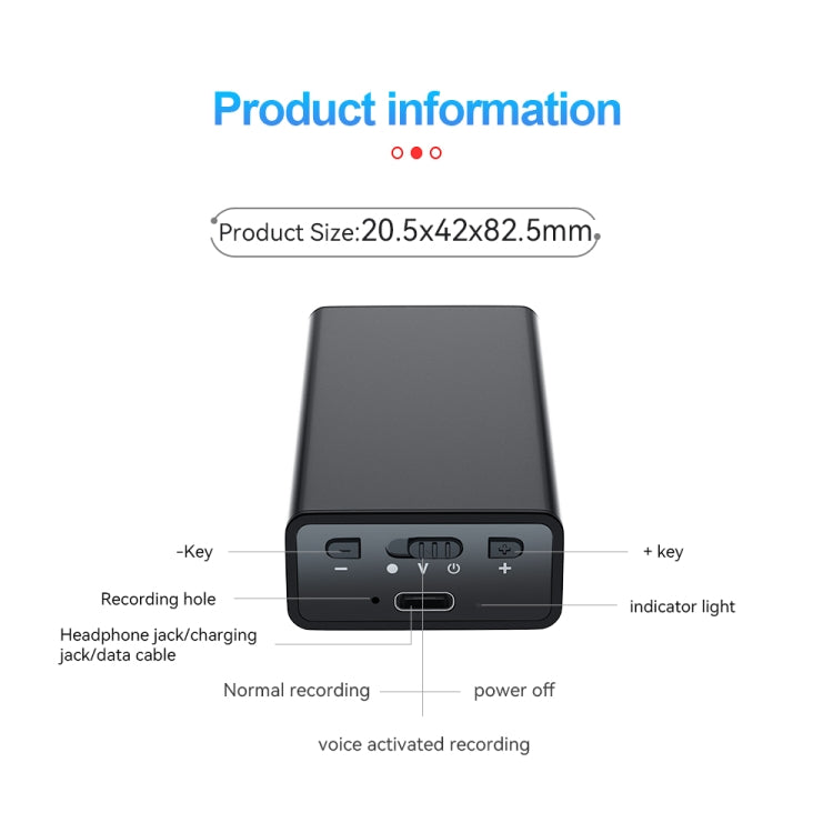 4. ADPCM recording 192Kbit, optional 50dB voice-activated recording, automatic split recording, loop overwrite recording