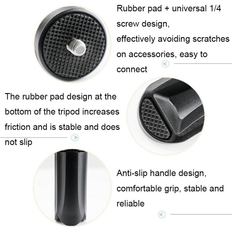 4. The rubber pad design at the bottom of the tripod increases friction and is stable and does not slip