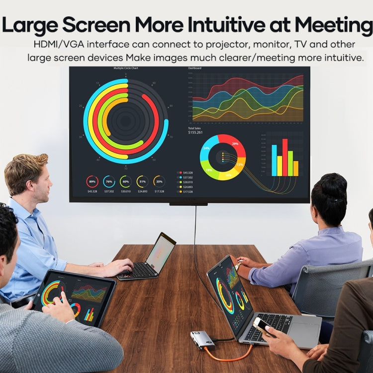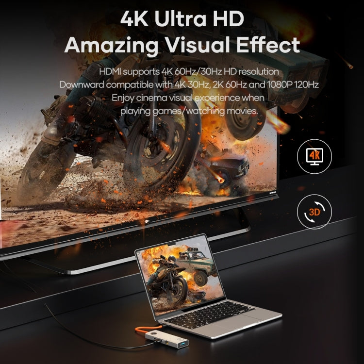 2. 6 in 1 docking station, get rid of troubles bought by single interface of notebook, realize multiple interface functions