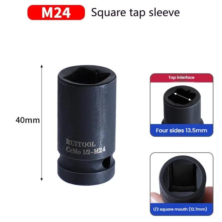 RUITOOL 1/2 inch Tap Socket Pneumatic Wrench Square Socket Inner Quarter Square Hole Wrench Tool, Spec: M24