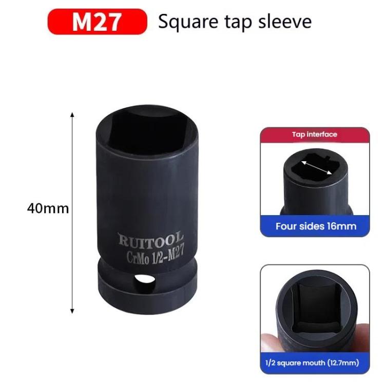 RUITOOL 1/2 inch Tap Socket Pneumatic Wrench Square Socket Inner Quarter Square Hole Wrench Tool, Spec: M27