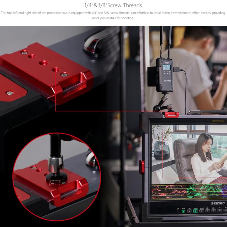 10. The top, left, and right side of the protective case are equipped with 1/4 inch and 3/8 inch screw threads, which can be used to install video transmission or other devices