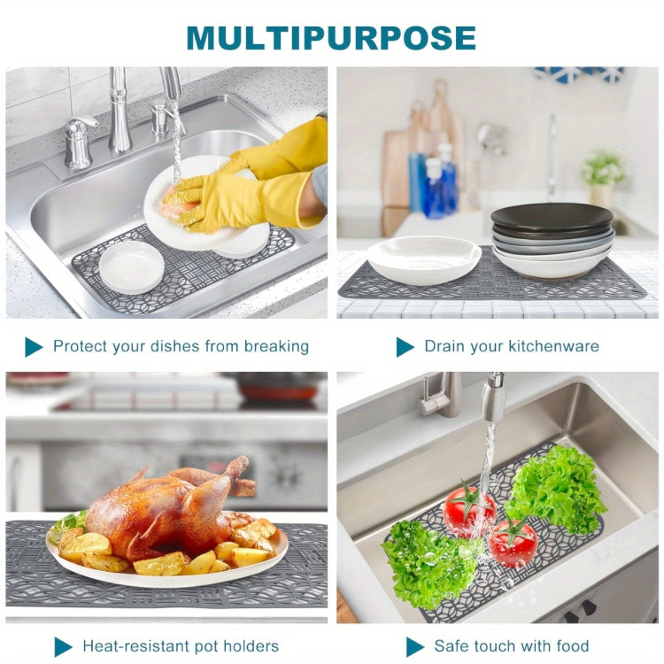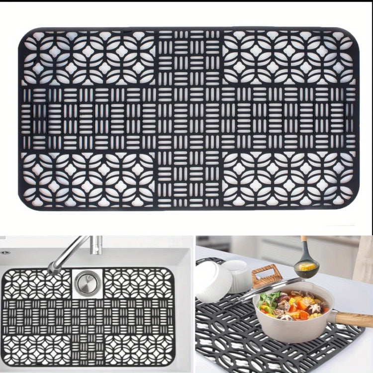 Silicone Sink Mat Cuttable Sink Pad Kitchen Cabinet Mat Dish Drainer Mat 66 x 35cm(Black)