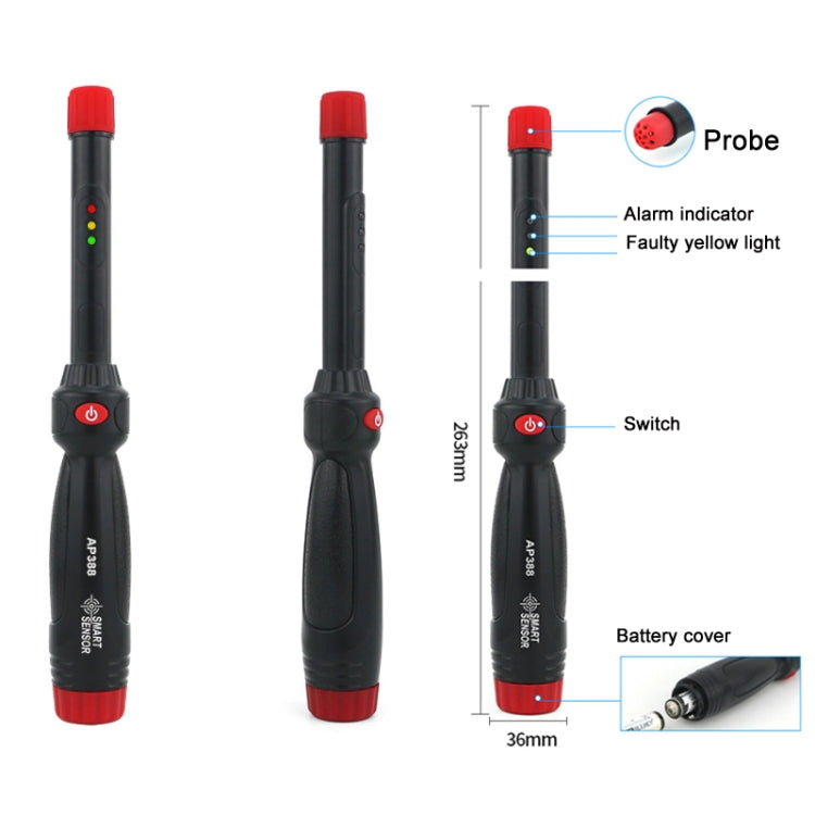 9. LED alarm light, the red light is on when gas is detected, the battery needs to be replaced when the green light is on, and the fault is indicated when the yellow light is on
