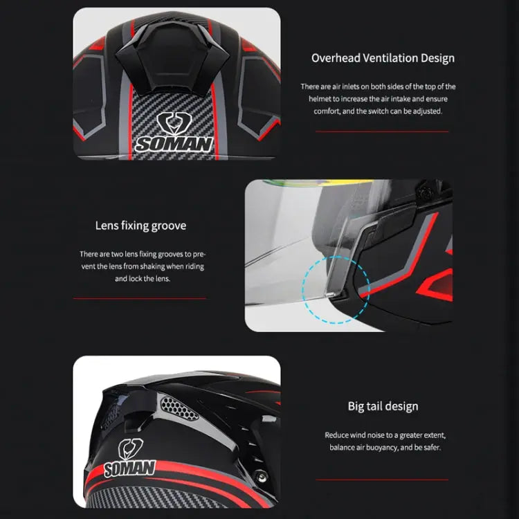 SOMAN Motorcycle Electric Bicycle Dual Lens Riding Helmet, Size: L(Matte Black)