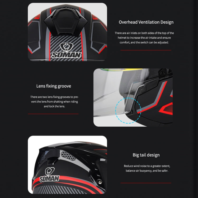 SOMAN Motorcycle Electric Bicycle Dual Lens Riding Helmet, Size: M(Black Red)