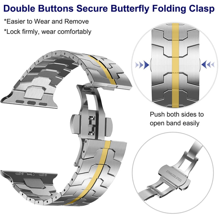 Steel Watch Band For Apple Watch Ultra 49mm&Watch Ultra 2 49mm / Series 9&8&7 45mm / SE 3&SE 2&6&SE&5&4 44mm / 3&2&1 42mm(Silver Gold)