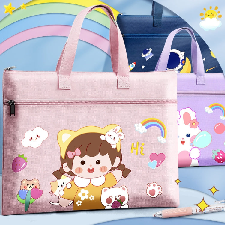 Student Tote Handle Book Bag Canvas Waterproof Data Storage Bag(Lucky Rabbit)