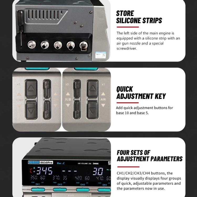 3. Automatic completion of the preheating, warming up the machine sound is the temperature has reached the set temperature air flow data, you can carry out the desoldering operations