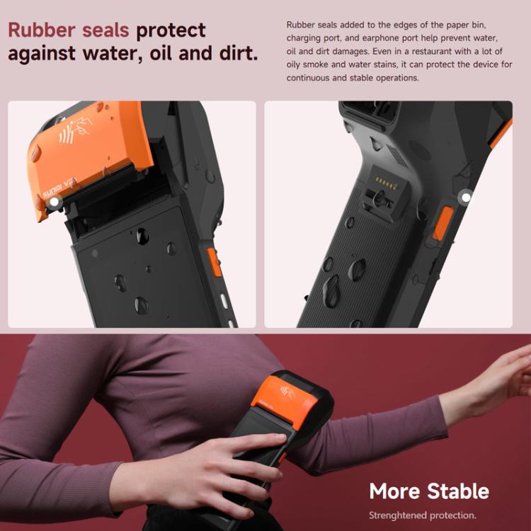 7. Paper compartment, charging port and earphone port with rubber plug design to prevent water and oil from entering the device