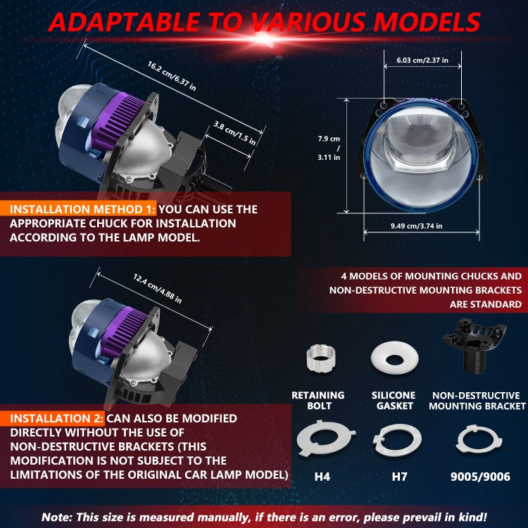 4. Non-destructive installation for direct use, with H4/H7/9005/9006 chuck and 2 types of fixing screws.