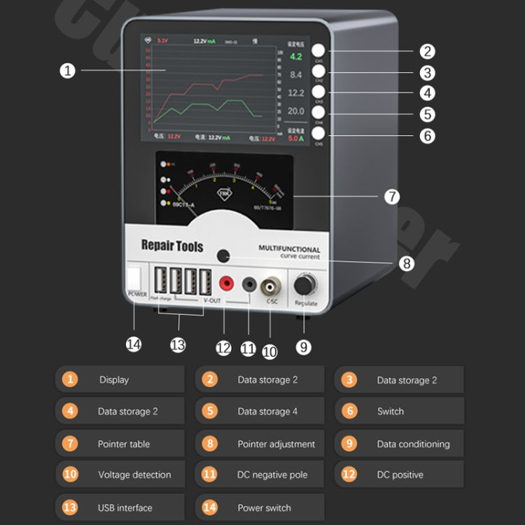 2. 3 in 1 meter, 0-5A / 0-50MA / 0-500mA.