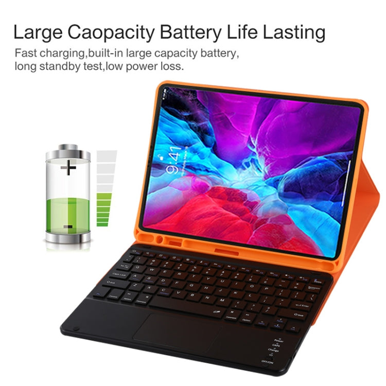 TG11BC Detachable Bluetooth Black Keyboard Microfiber Leather Tablet Case for iPad Pro 11 inch (2020), with Touchpad & Pen Slot & Holder (Orange)