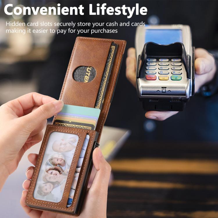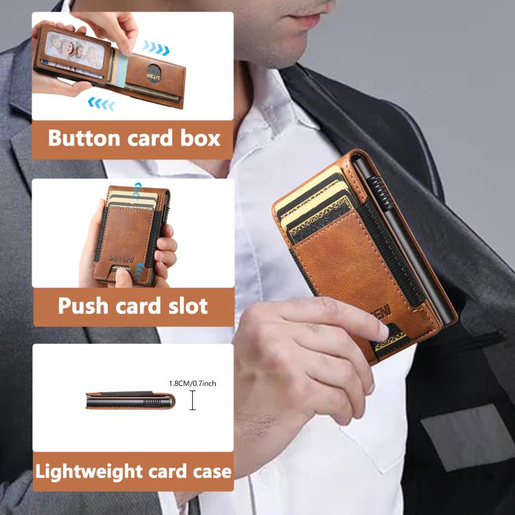 The Suteni oil wax pattern button automatically pops out the elastic band card box(Brown)