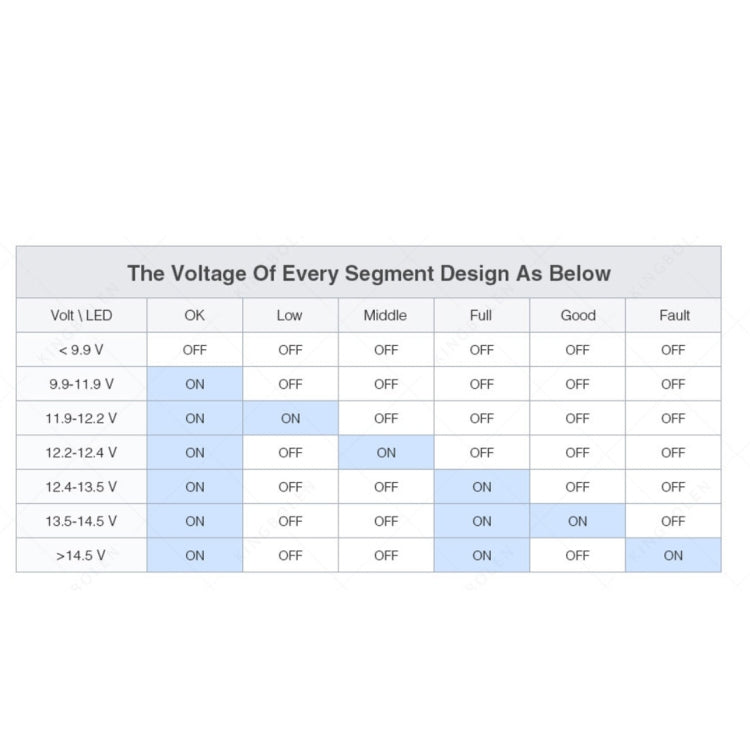 6-LED display, clearly present the alternator and battery state.
