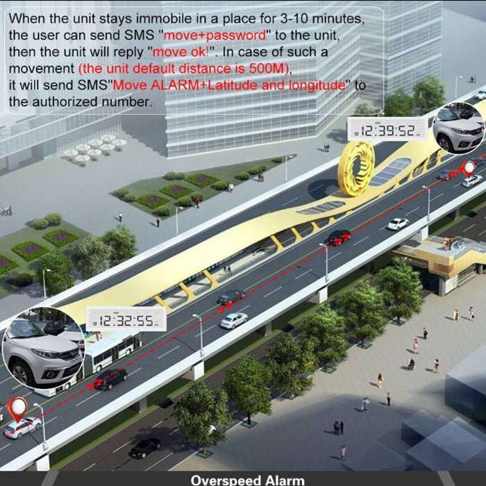 4. Over-speed Alarm: This alarm works only under continuous positioning mode.When the unit speed is exceed the speed you preset, it will send message "speed alarm!" to the admin number every 5 minutes.