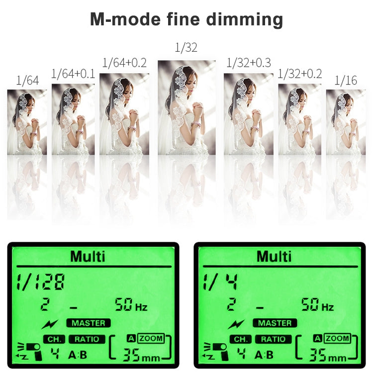 9. Manual Flash Exposure Bracketing: Adjust in 1/3 gear increments between +/-3 gears (manual flash exposure compensation and flash bracketing can be used in combination)
