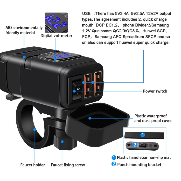 1. USB output voltage: 5V3.4A /9V2.5A/12V2A Three output schemes.