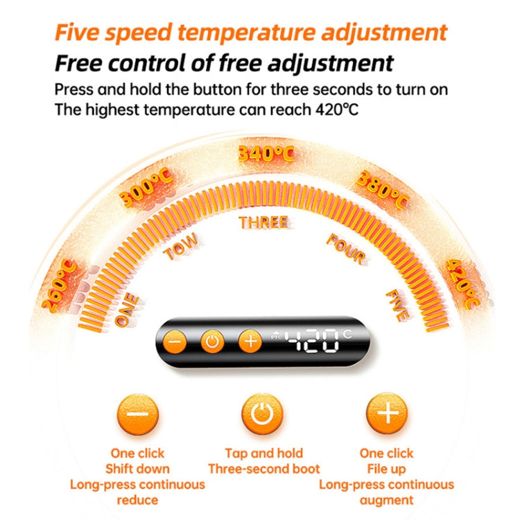 3. Upgraded intelligent chip, 5 adjustable temperature levels (260-420 degrees Celsius), switchable Celsius/Fahrenheit