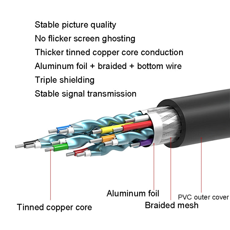 8. Thickened tinned copper core conduction, aluminum foil + braid + bottom wire, triple shielding, stable signal transmission, stable picture quality, no flicker screen replay