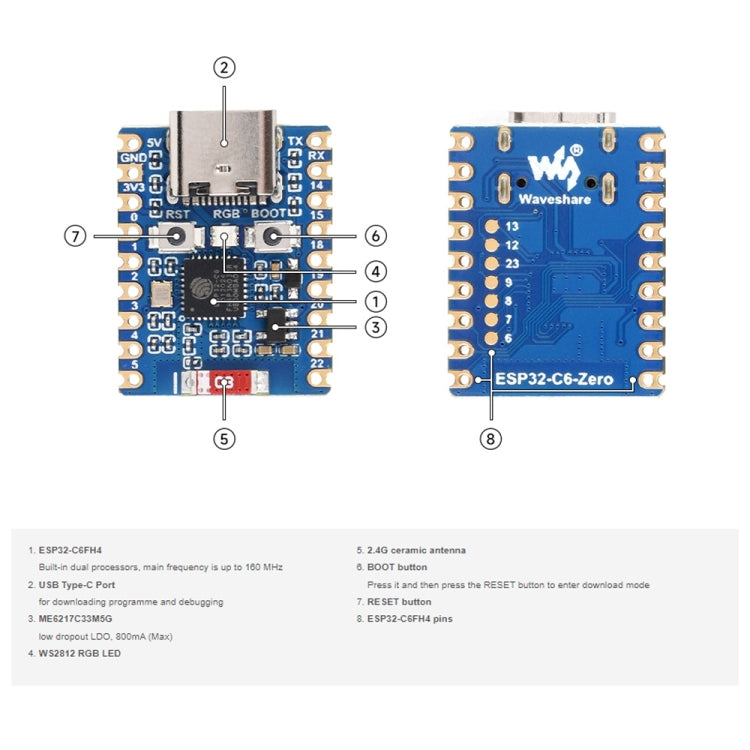 6. Onboard USB Type-C interface, leading to 22 GPIOs for flexible configuration of peripheral functions