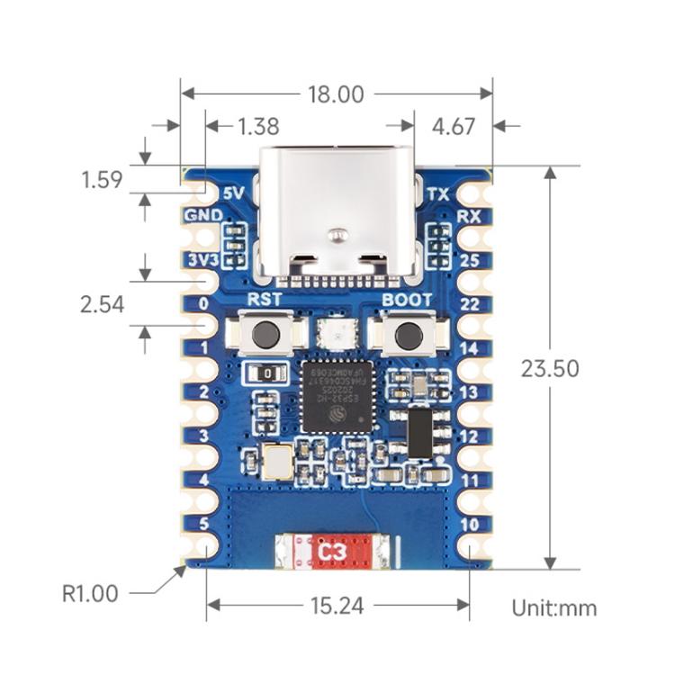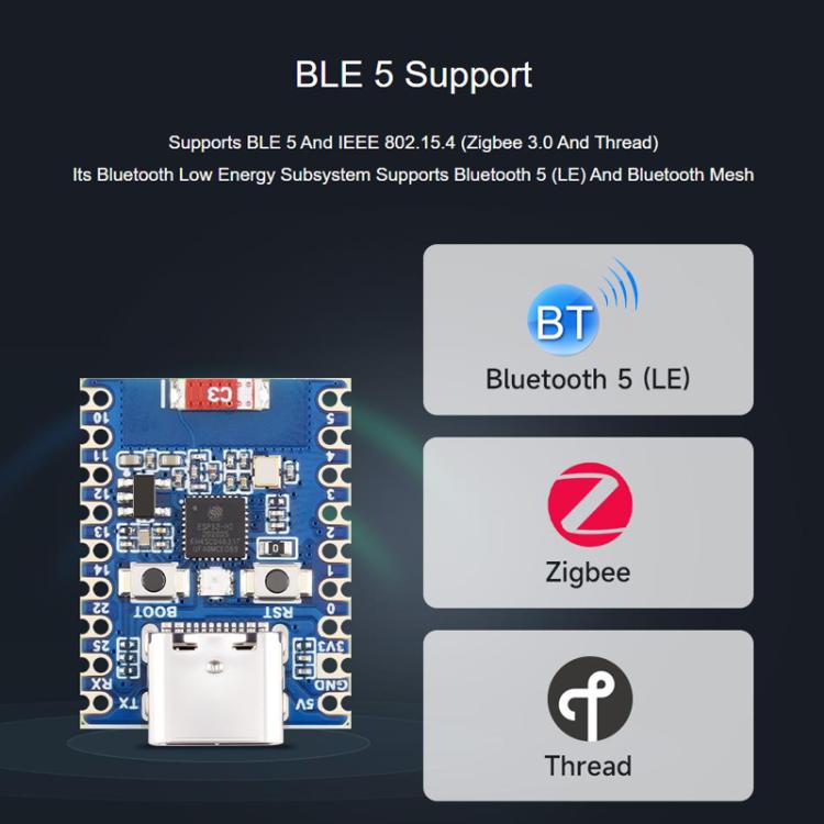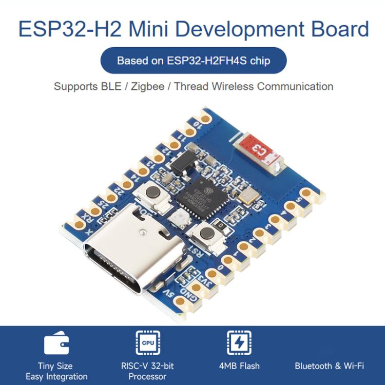 1. Adopts ESP32-H2FH4S chip with RISC-V 32-bit single-core processor, up to 96MHz, and built-in 4MB Flash memory