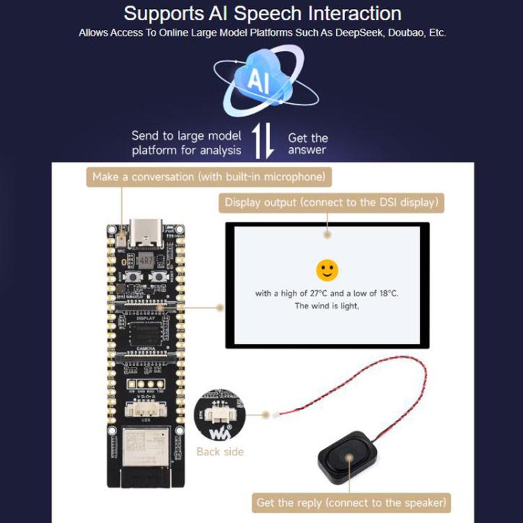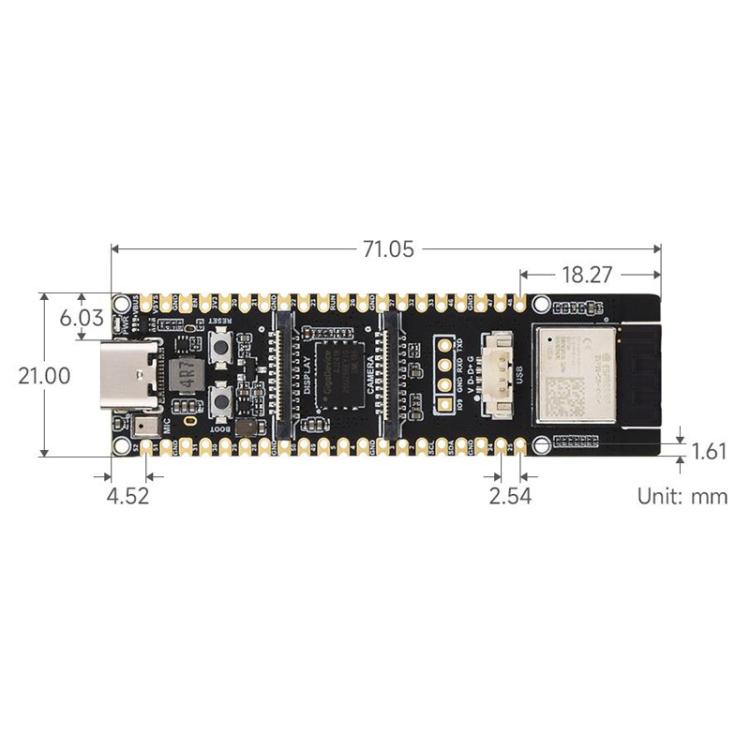 4. On-chip stacked 32MB PSRAM, externally integrated 32MB Nor Flash