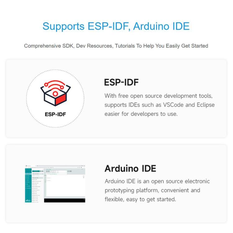 3. Built-in 512KB SRAM and 384KB ROM, overlay 8MB PSRAM and 8MB Flash