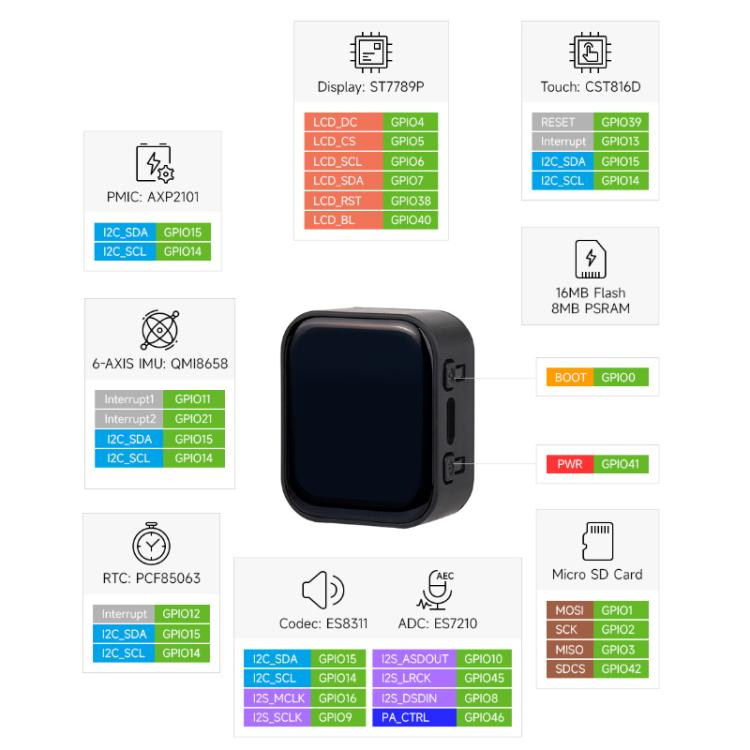 7. Built-in ST7789P driver chip and CST816D capacitive touch chip, communicating via SPI and I2C interfaces respectively, without occupying excessive interface pins.
