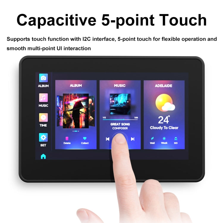 4. Onboard 4.3-inch LCD capacitive touch screen, 800×480 resolution, 65K color