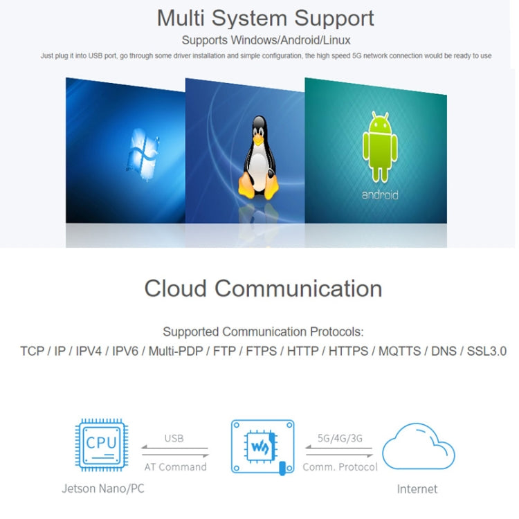 - Communication protocols: TCP/IP, IPV4, IPV6, Multi-PDP, FTP, FTPS, HTTP, HTTPS, MQTTS, DNS, SSL3.0