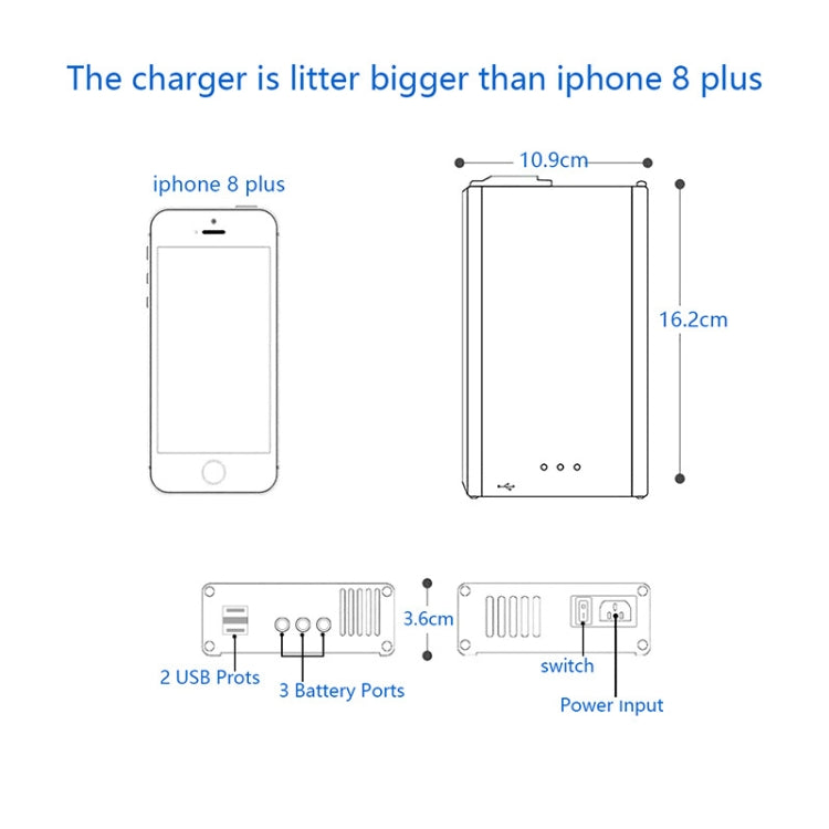 8. Charging time: about 65 minutes to fully charge 3 batteries